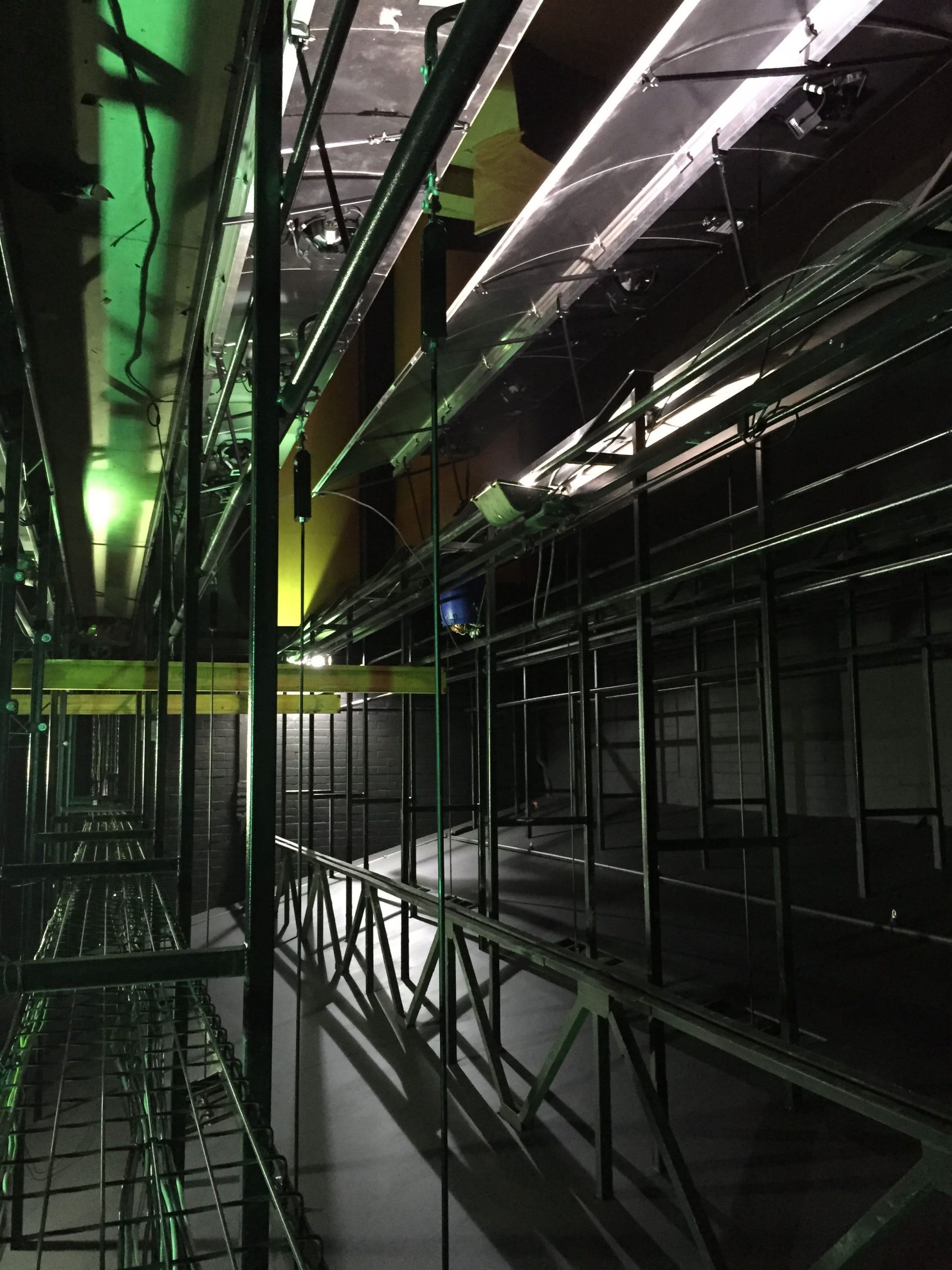 Sistemas de tramoya, varas, rigging y operación segura del escenario.